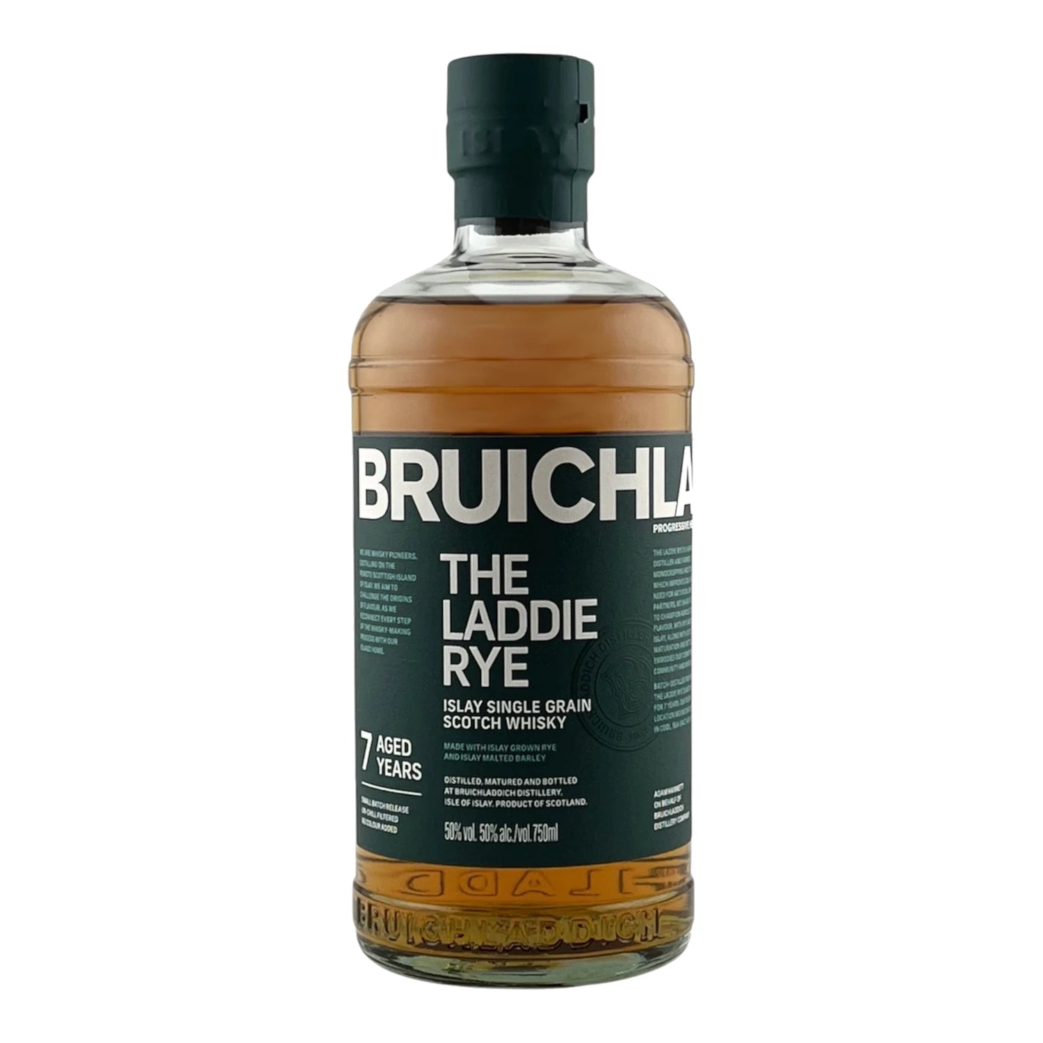 Bruichladdich The Laddie Rye is a groundbreaking single grain Scotch whisky from Islay, distilled with locally grown rye (55%) and malted barley (45%), matured for seven years in first-fill bourbon and virgin American-oak casks, and bottled at 100 proof (50% ABV). This innovative release blends Islay’s maritime terroir with rye-driven spice and traditional Bruichladdich floral character.