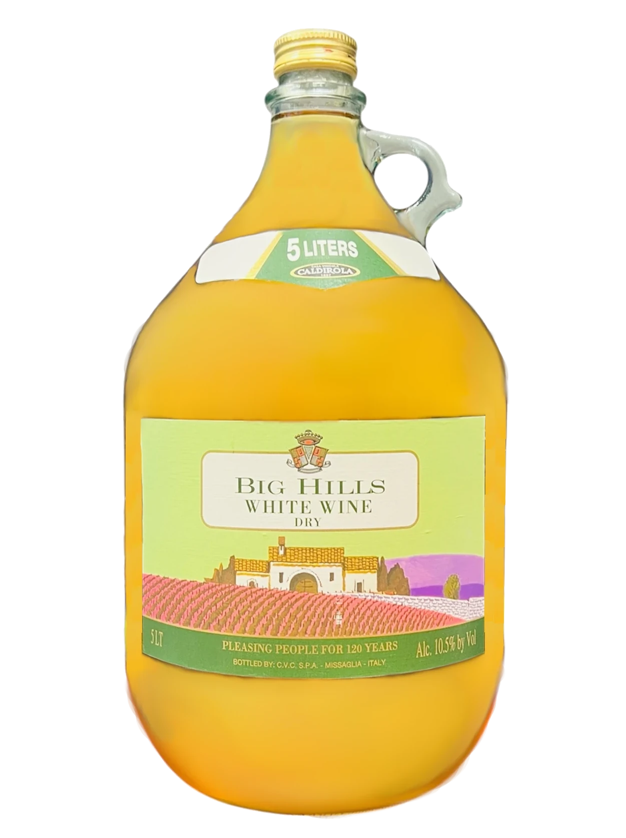 Caldirola is an Italian winery headquartered in Missaglia in the Lombardia region. The house gained recognition abroad for creating the five-liter "Dama" container format — a distinctive bottle shape with a neck collar designed personally by founder Nando Caldirola — which became the company's trademark in export markets. The Big Hills label carries forward that large-format tradition, delivering Italian dry white wine in a generous 5L box designed for extended freshness and easy pouring.